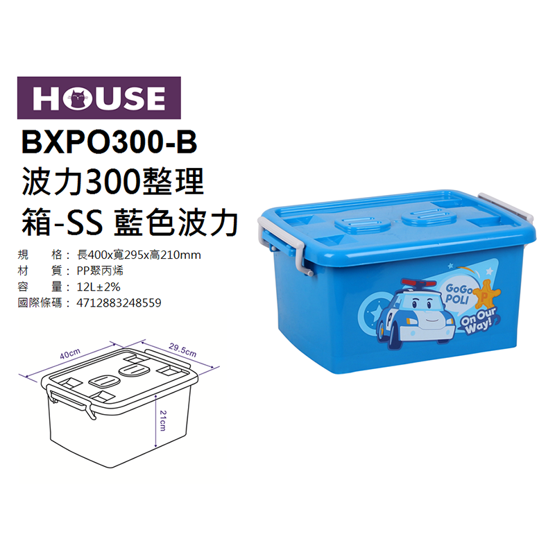 波力300整理箱(附蓋)-SS 藍色波力