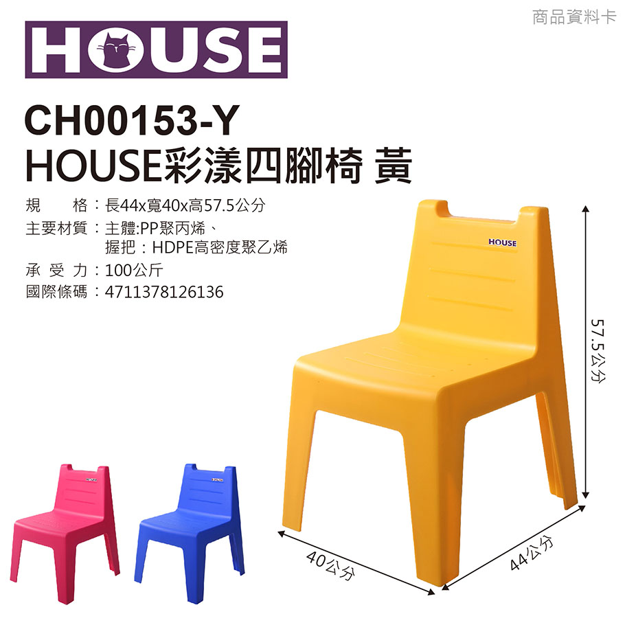 HOUSE彩漾四腳椅 黃