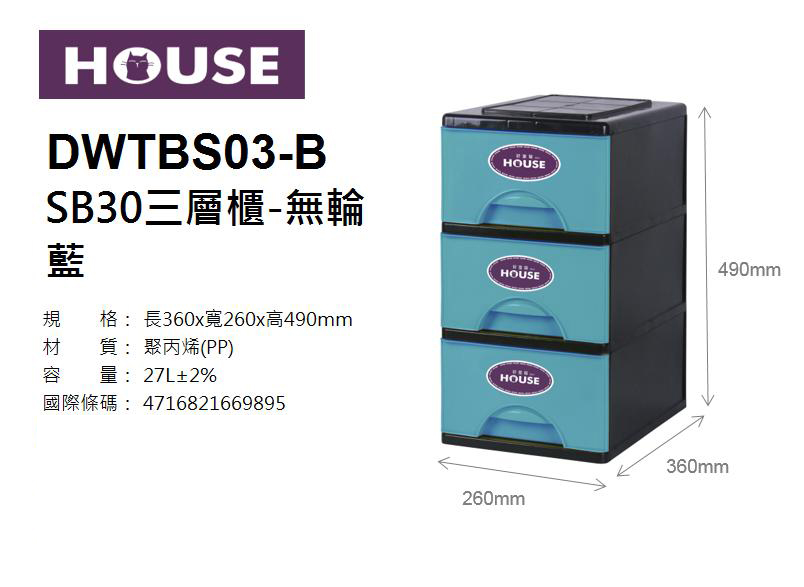 SB30三層櫃-無輪 藍